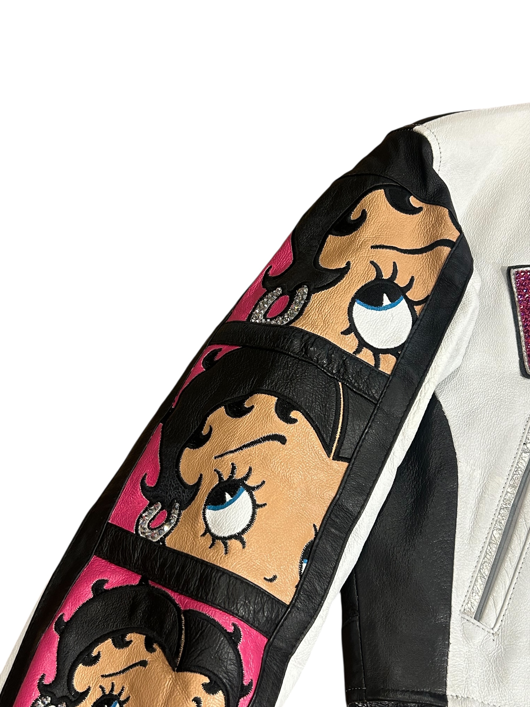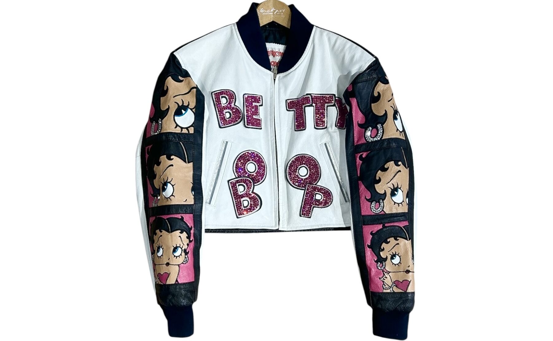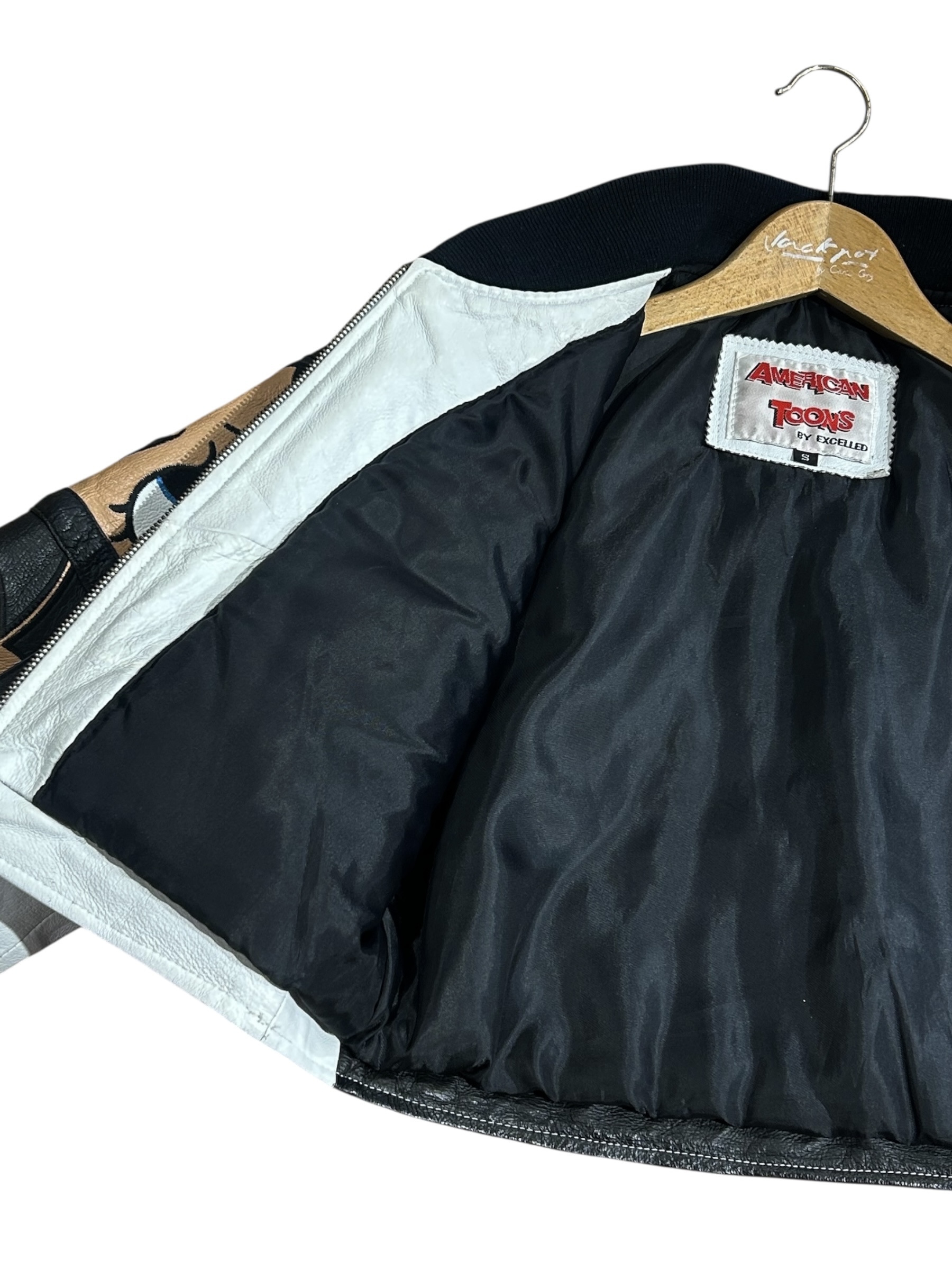 Kurtka skórzana damska marki American Toons wykonana ze skóry naturalnej w latach 90.