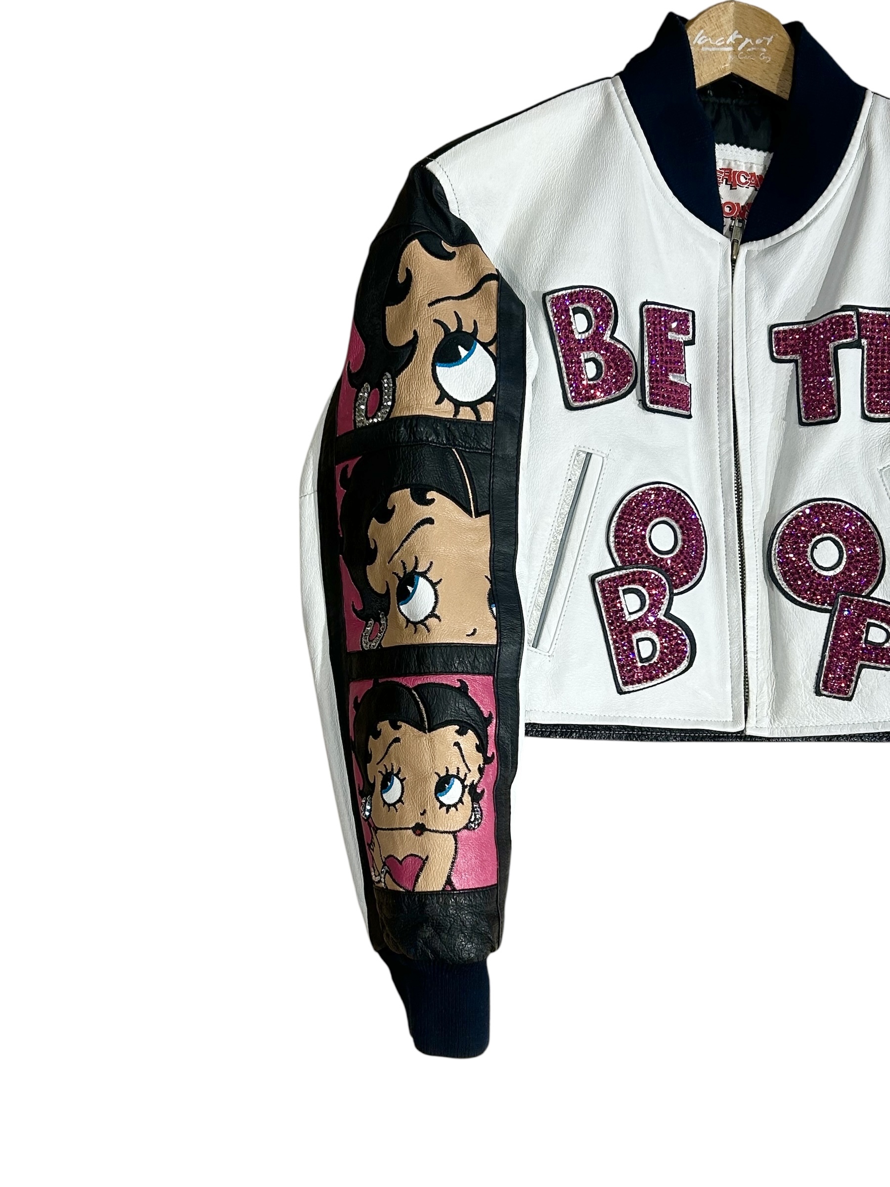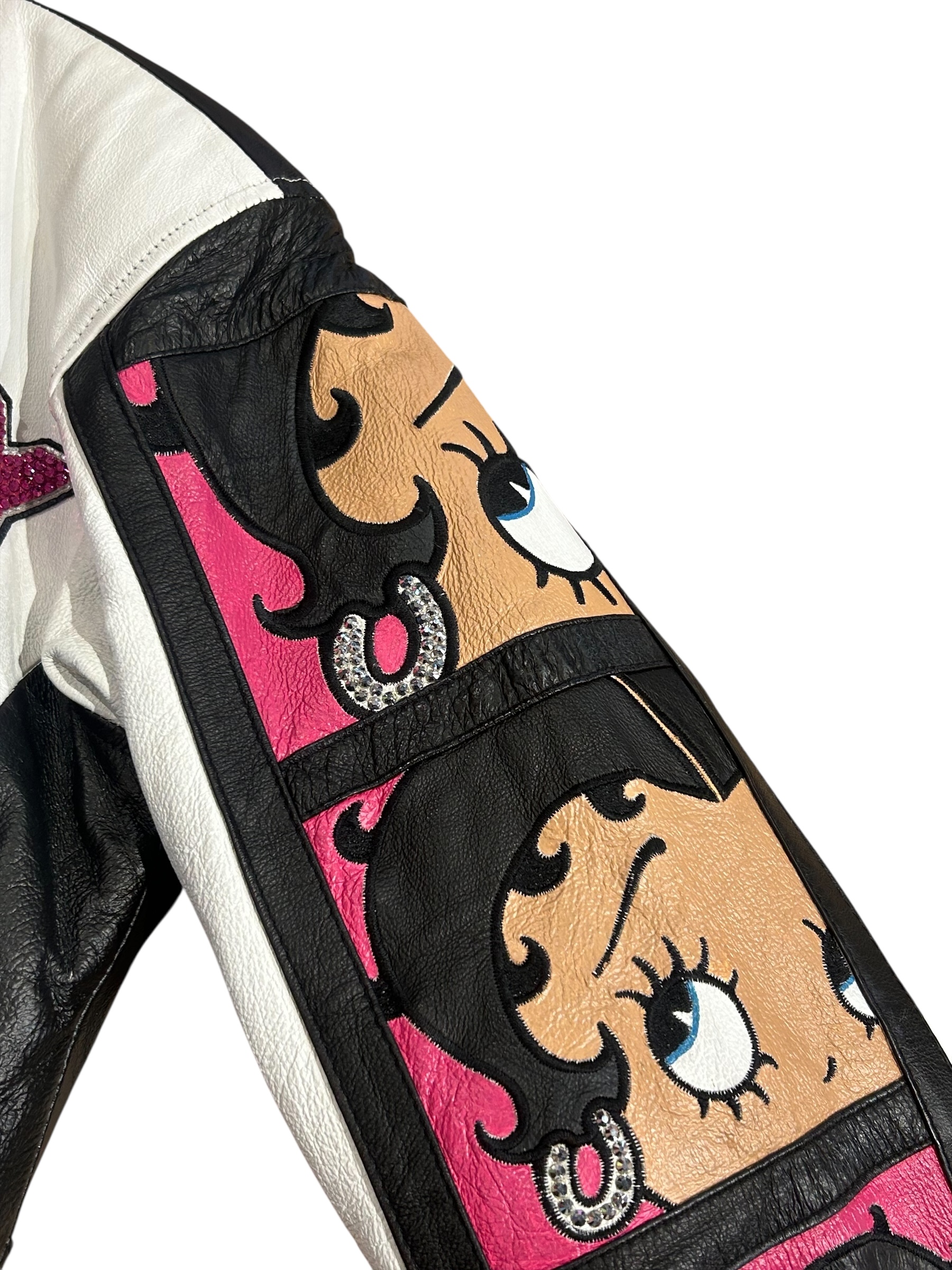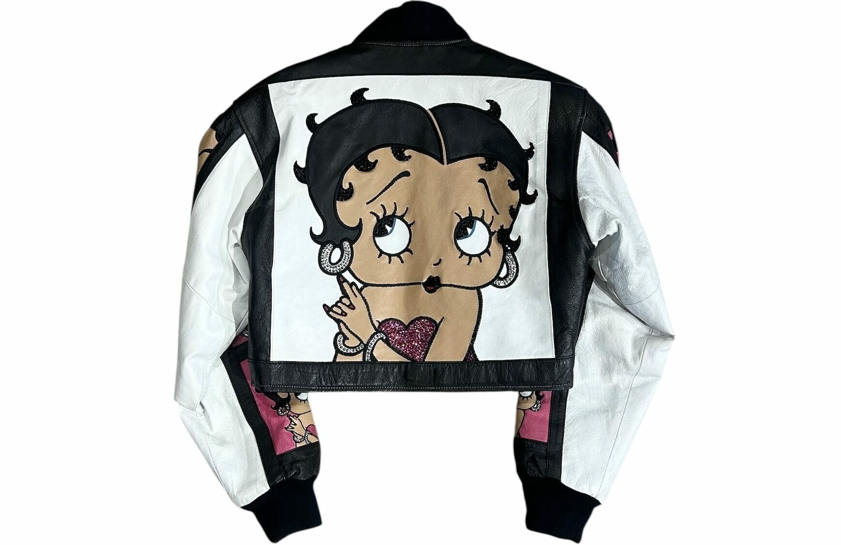 Kurtka skórzana damska marki American Toons wykonana ze skóry naturalnej w latach 90.