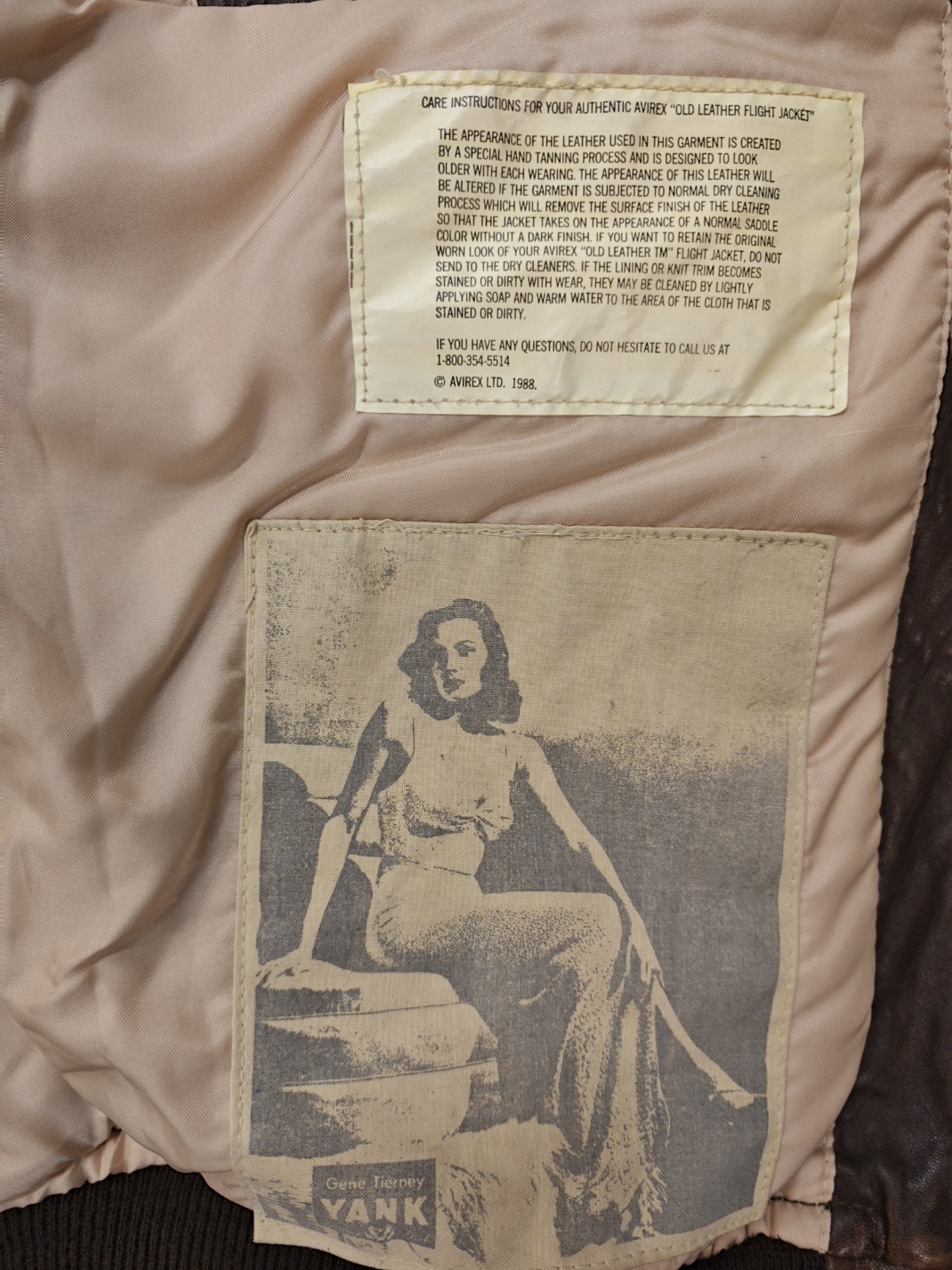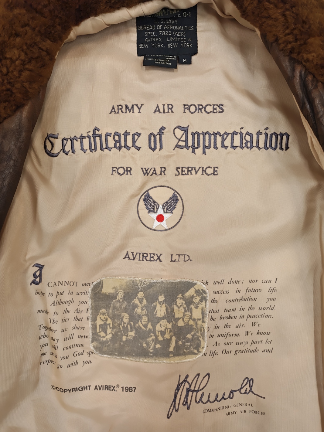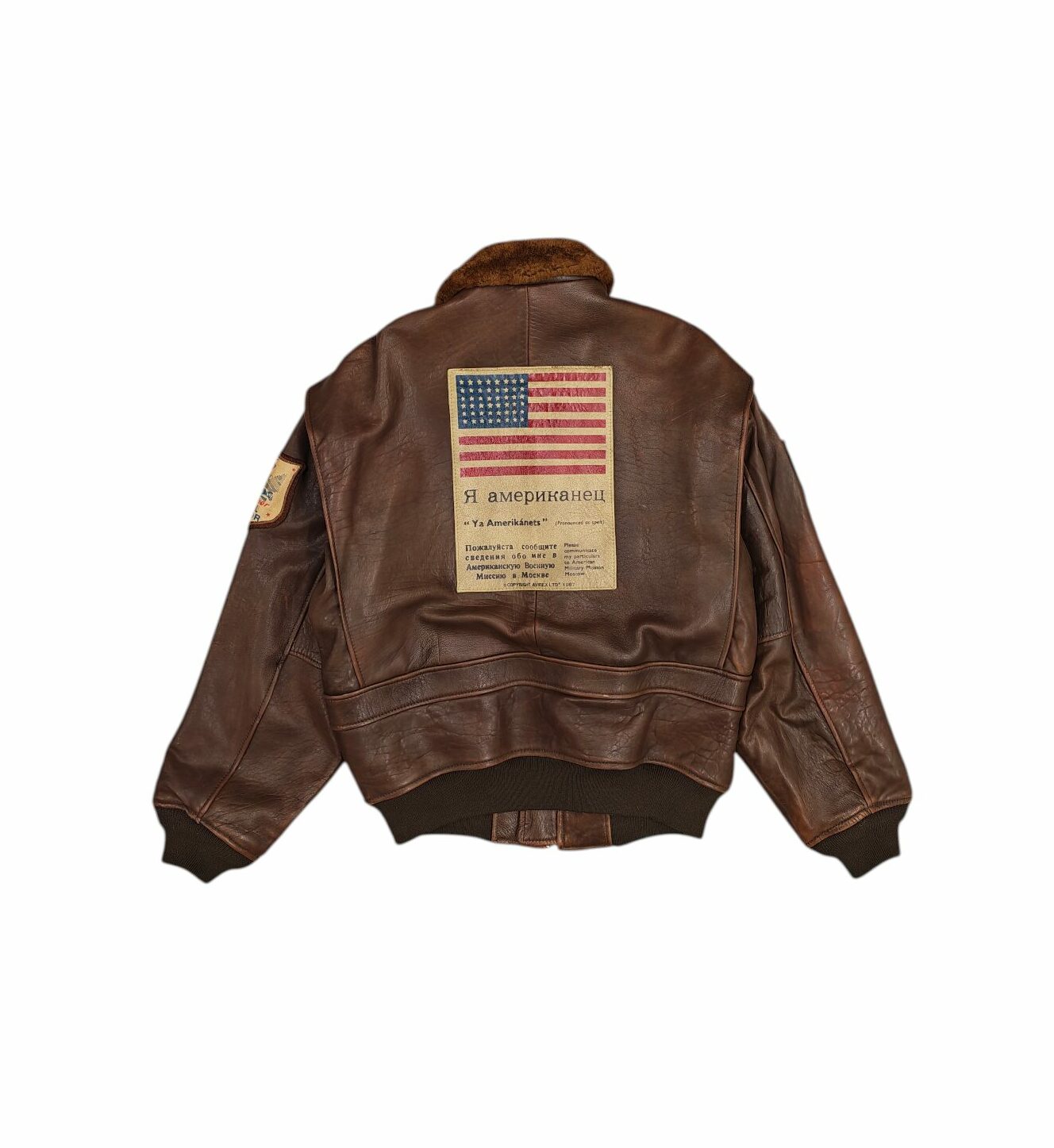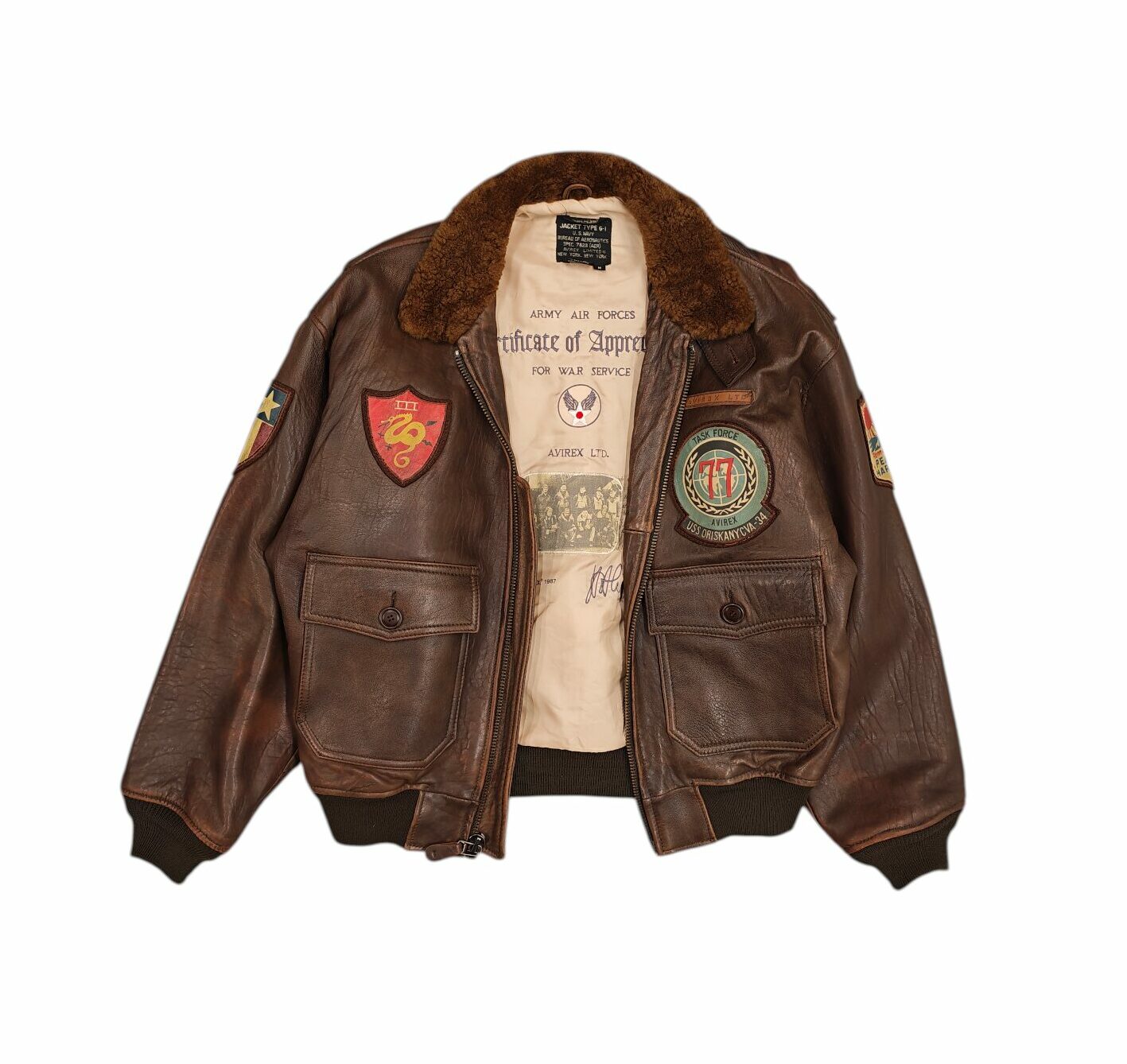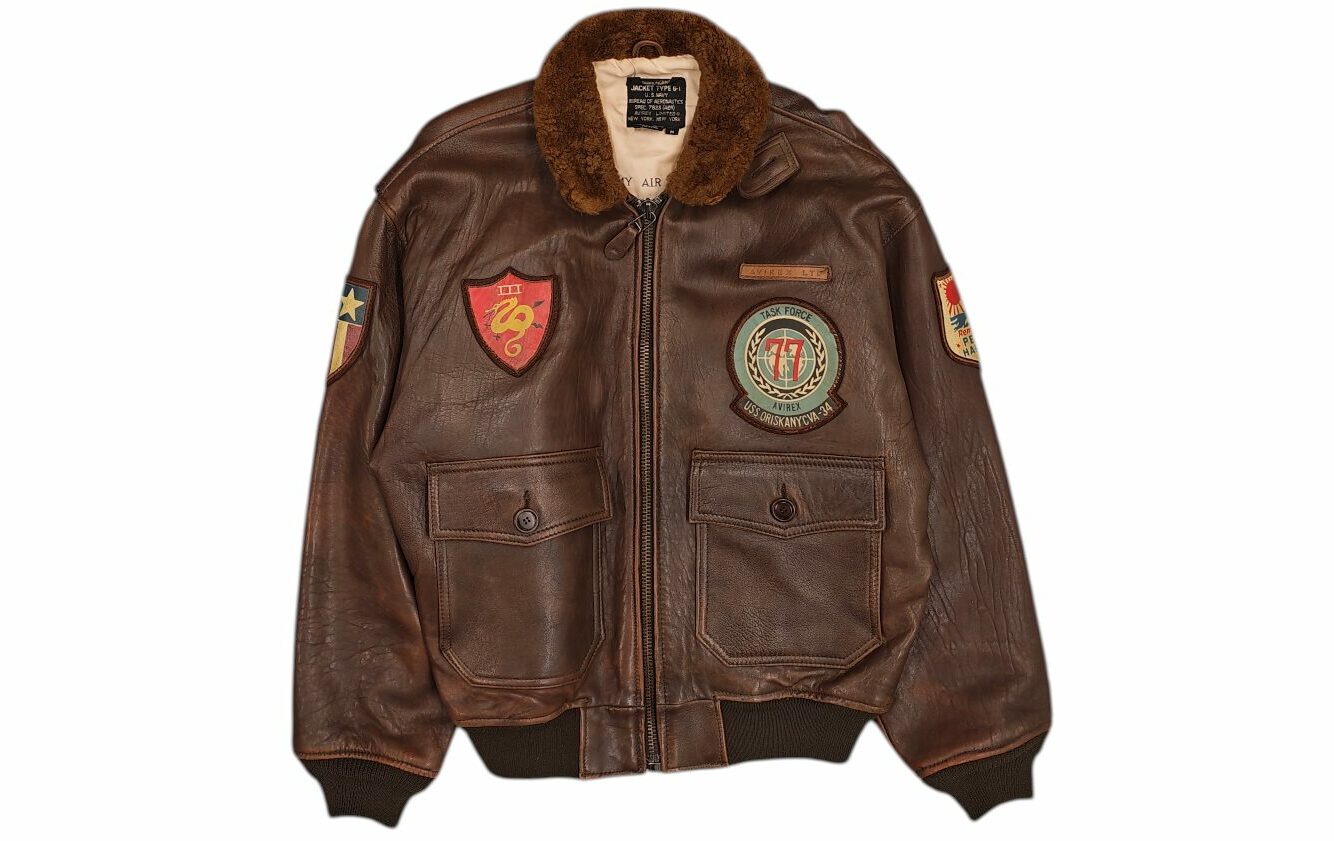 Starszy model G1 od Avirexa z przypiętym na stałe baranim kołnierzem.