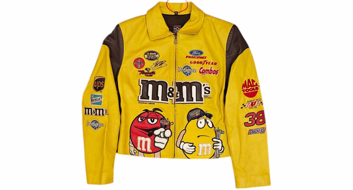 Kurtka damska Nascar M&M’s by JH Design wykonana ze skóry naturalnej.