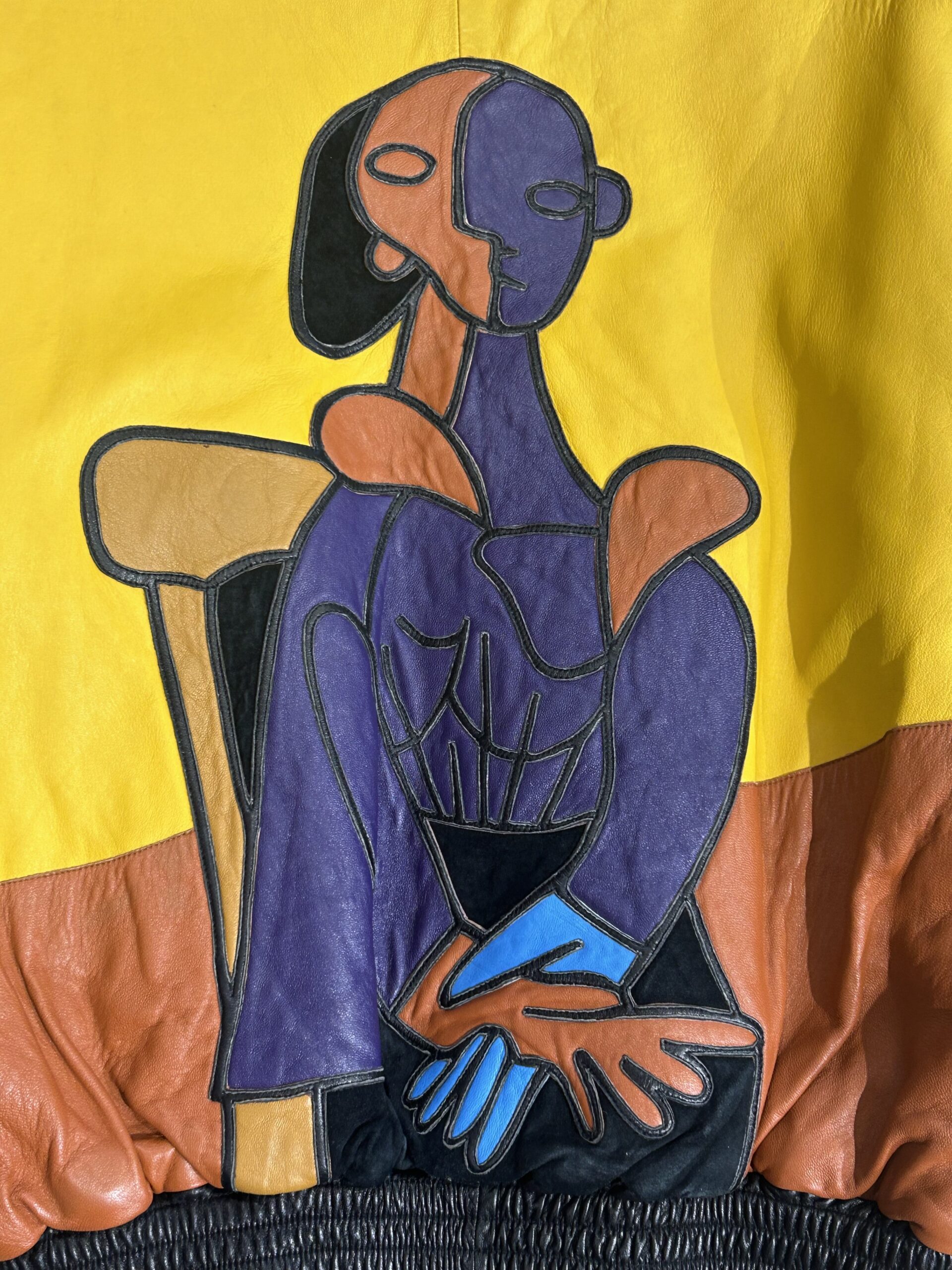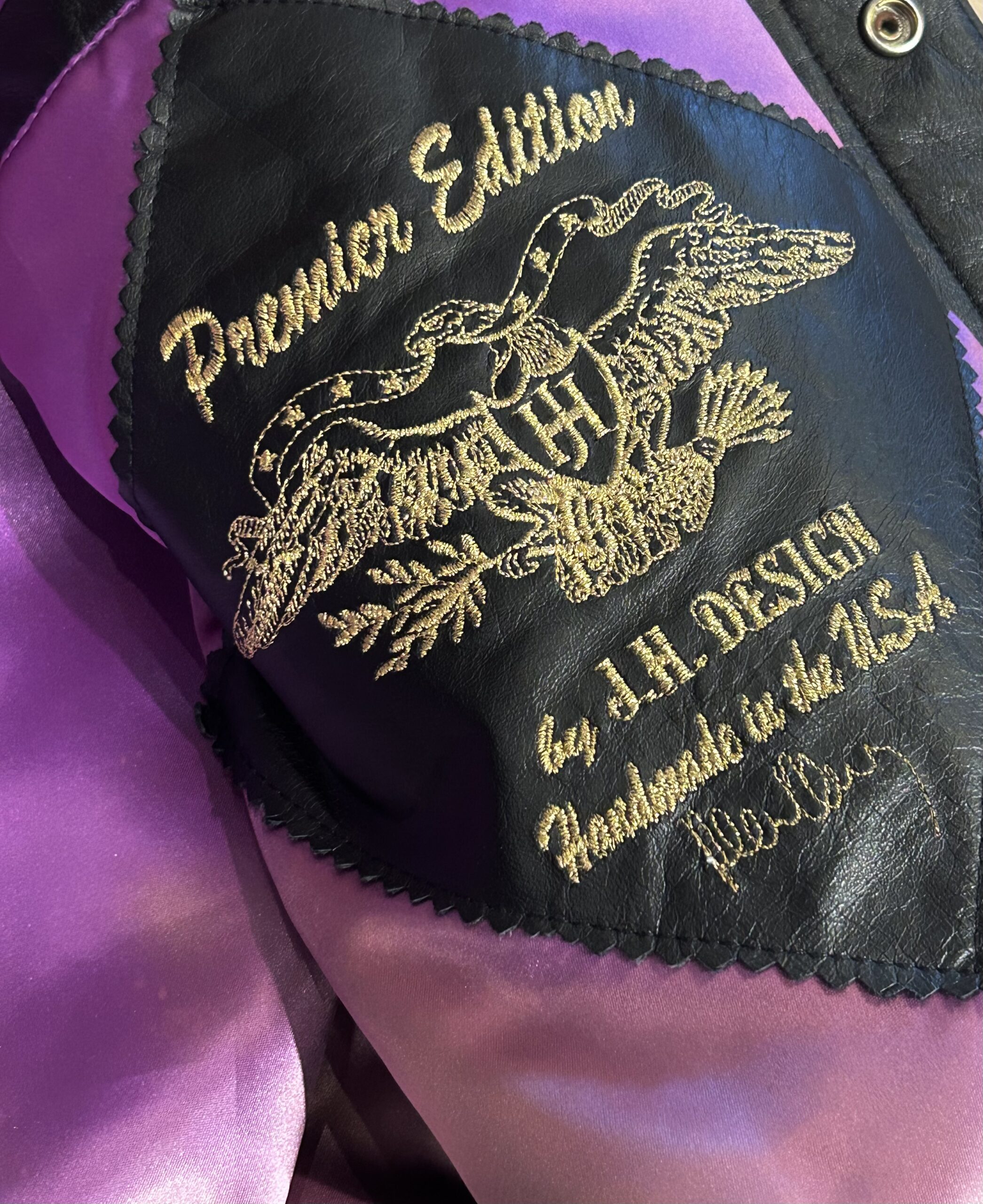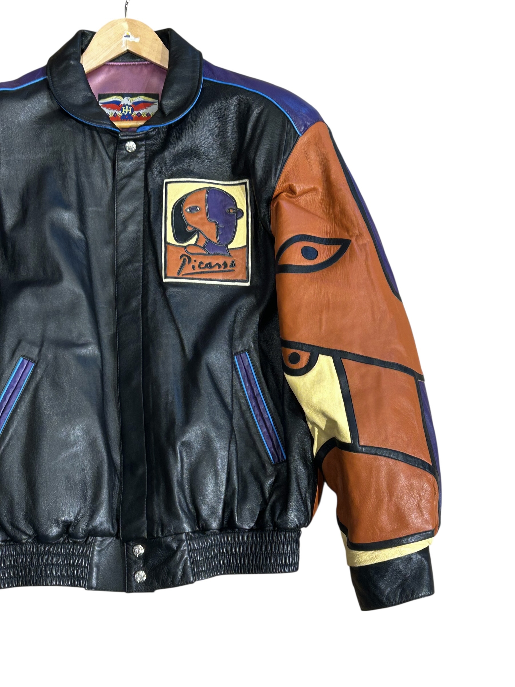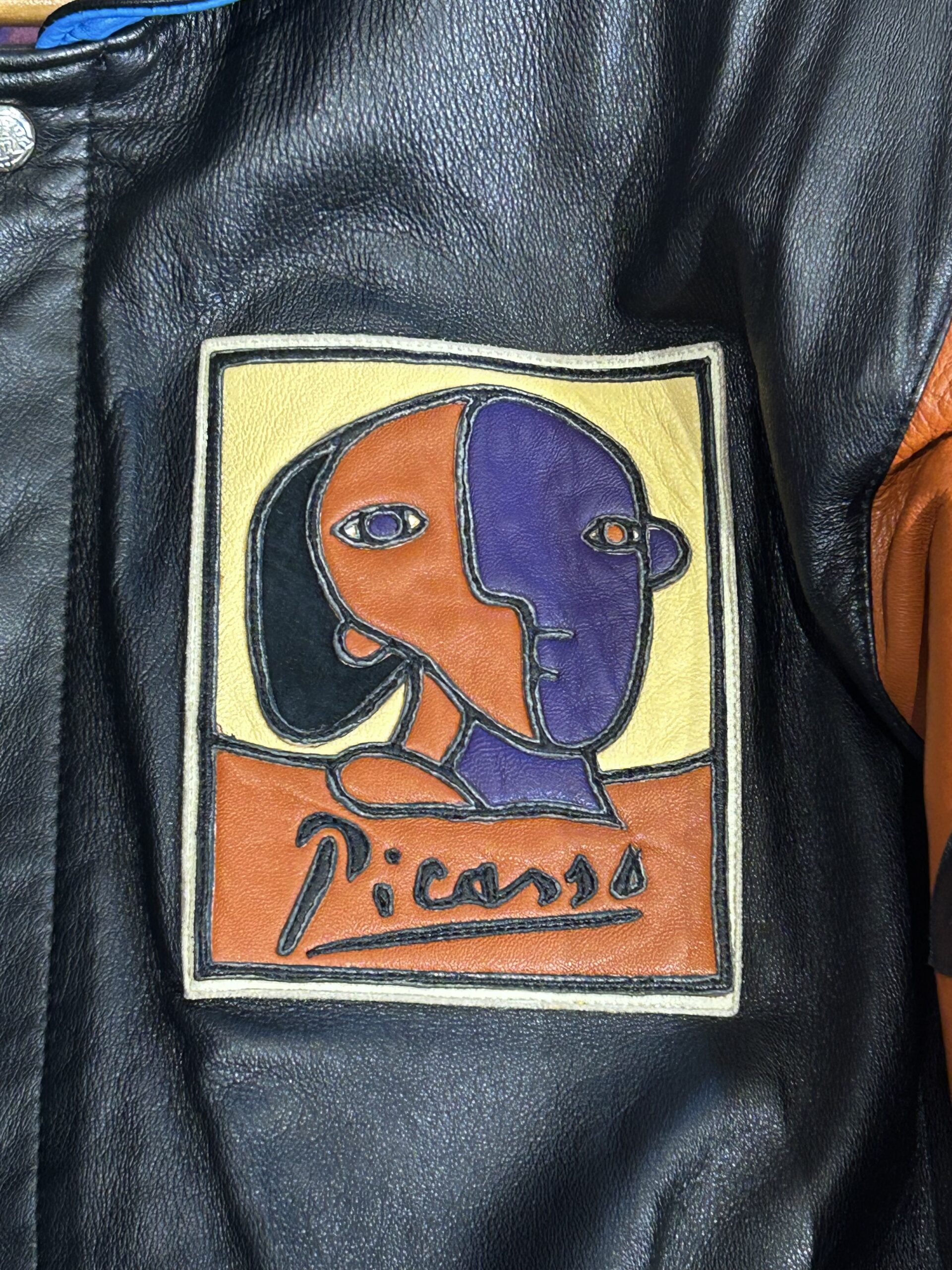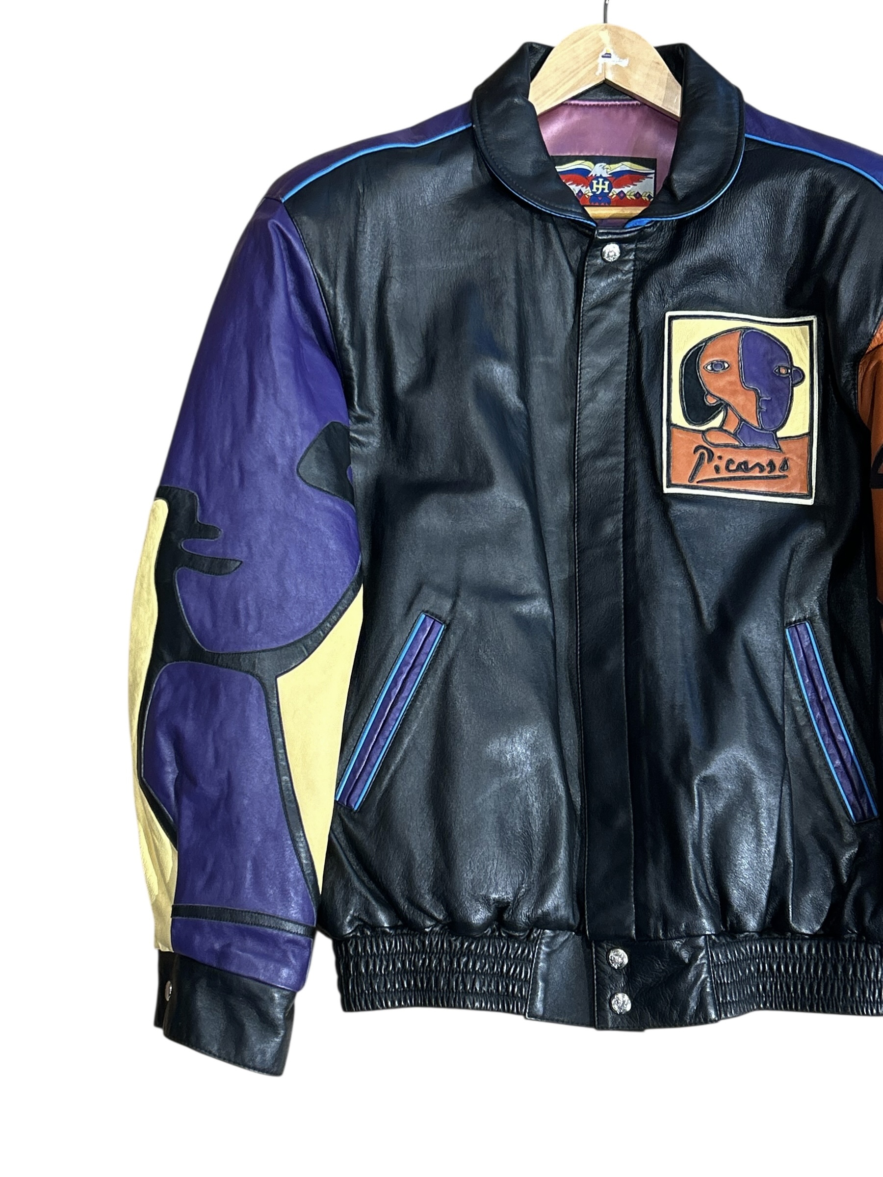 Licencjonowana kurtka kolekcjonerska J.H. Design Picasso. Jest to jeden z czterech modeli kurtek Picasso dostępnych w Avalonii. Wykonana w całości ze skóry naturalnej, wewnątrz jasna satynowa podszewka. Handmade in USA.