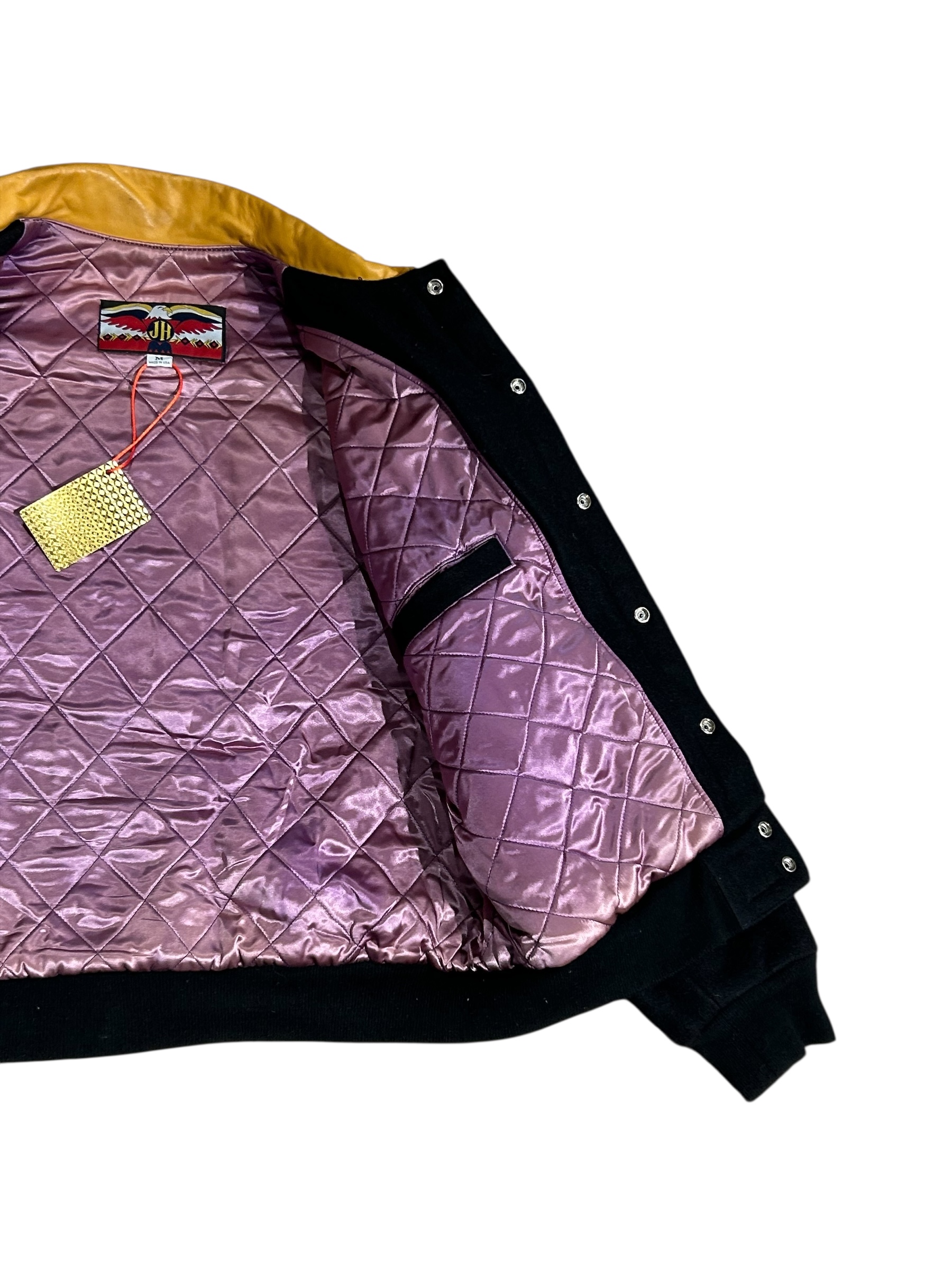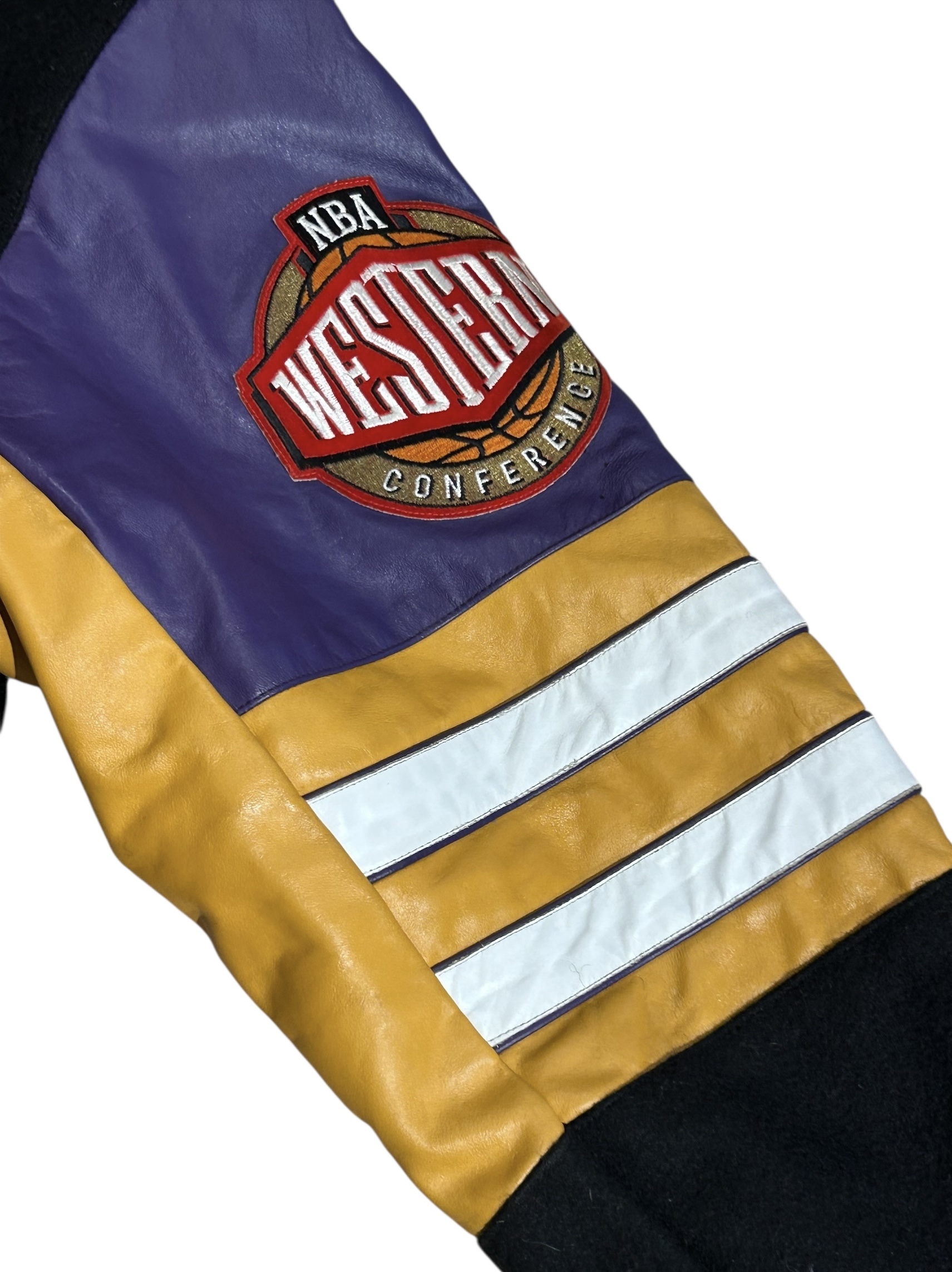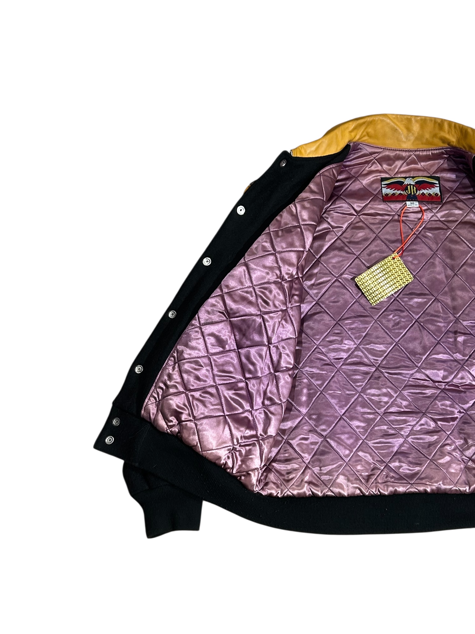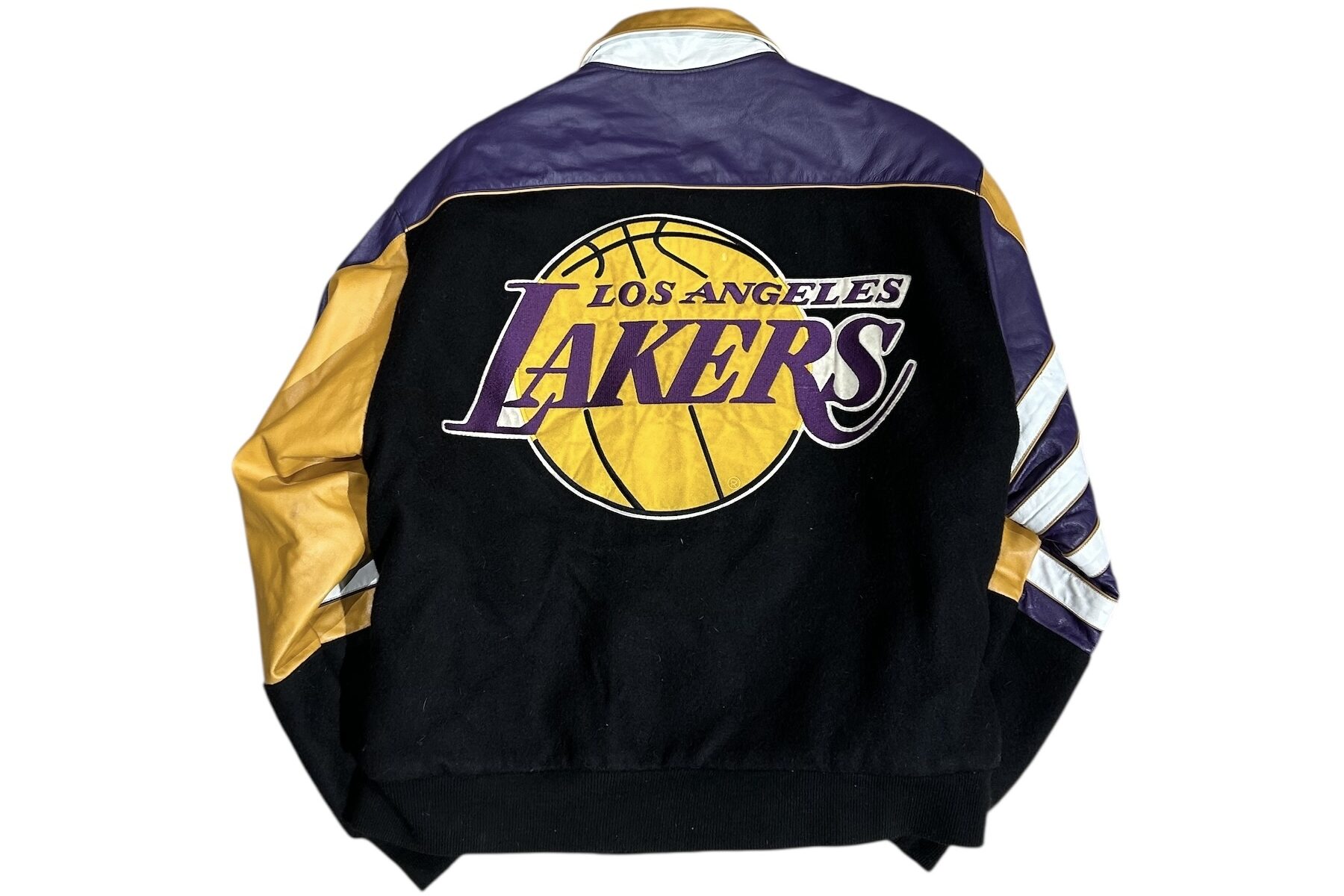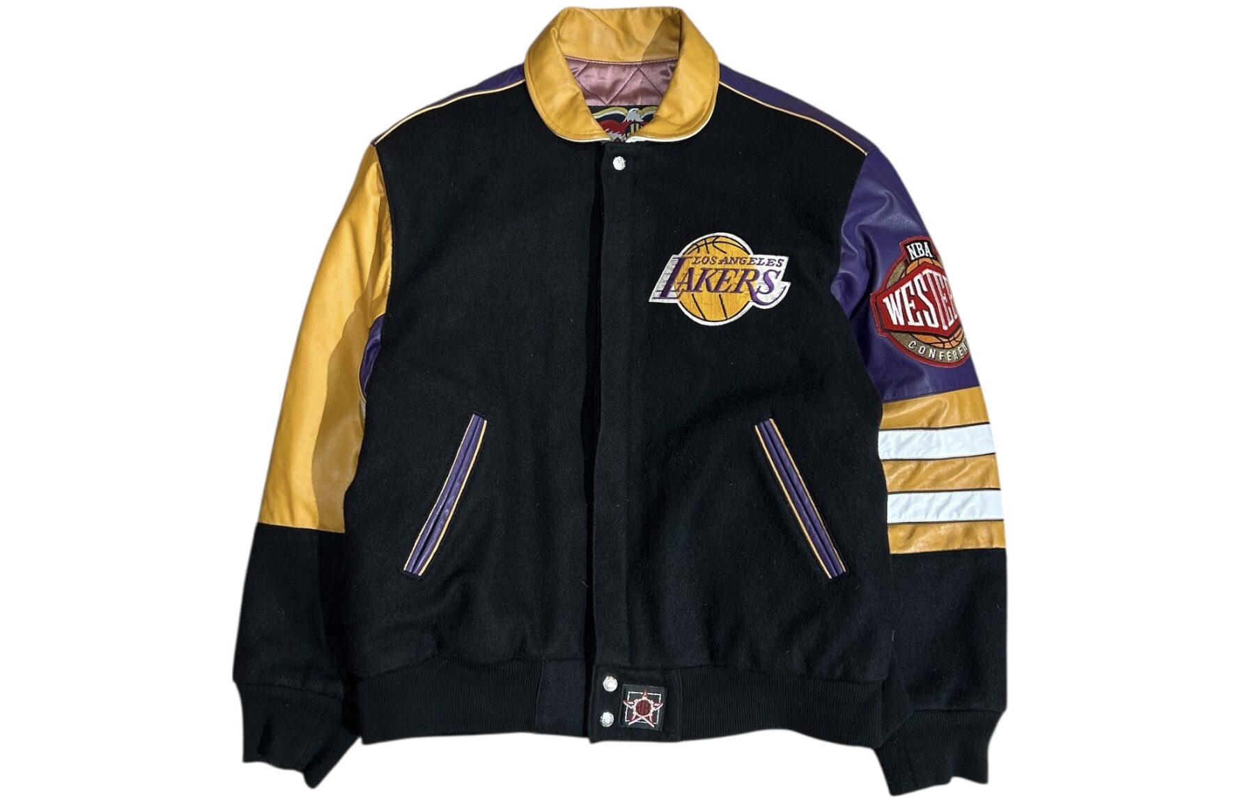 Kurtka Jeff Hamilton Lakers wykonana z połączenia skóry naturalnej i wełny.
