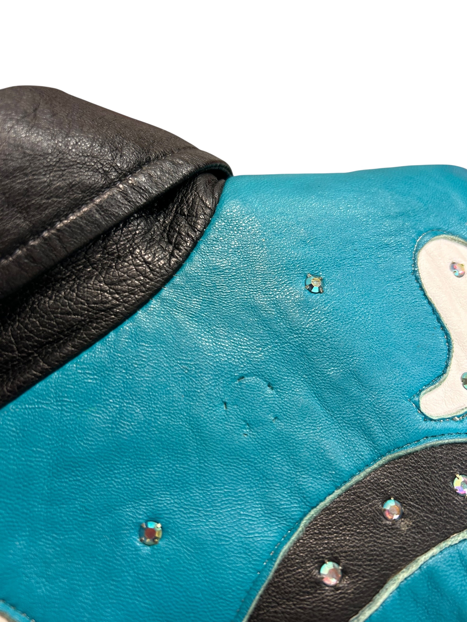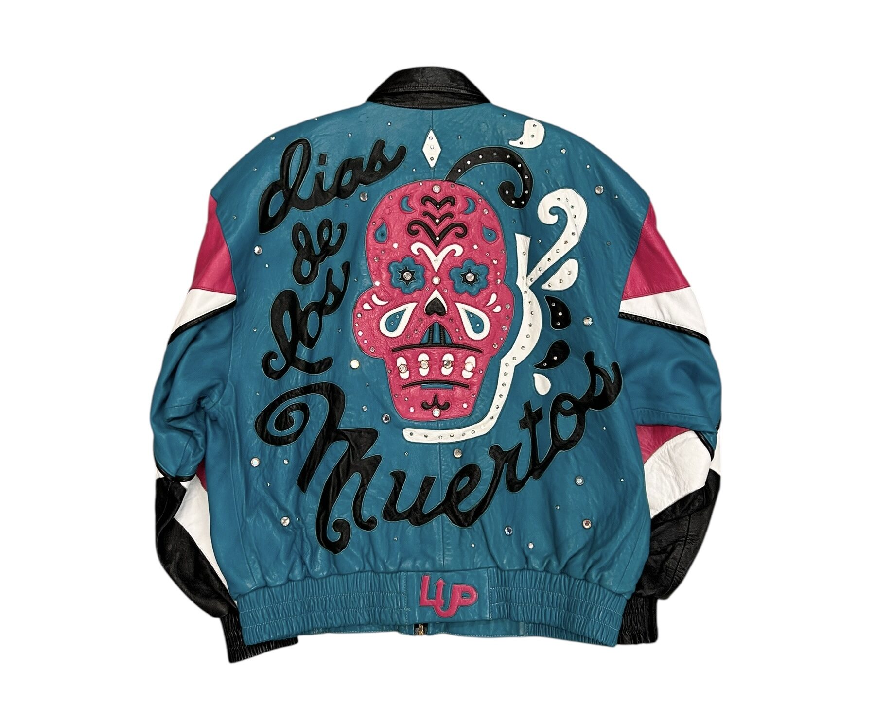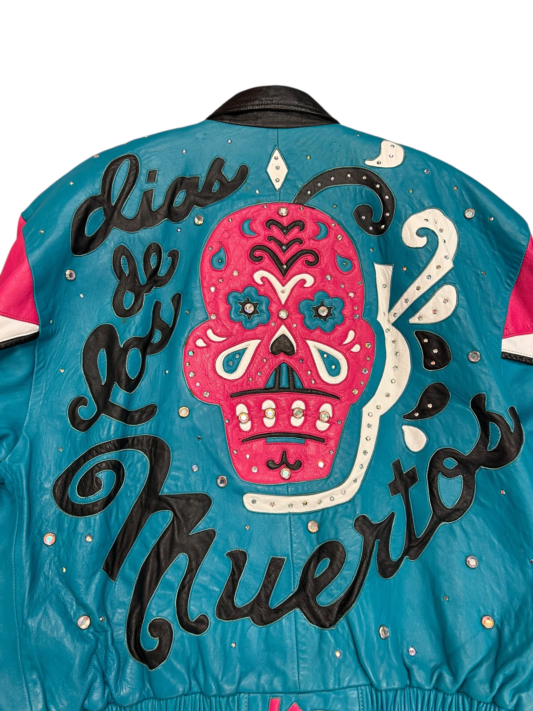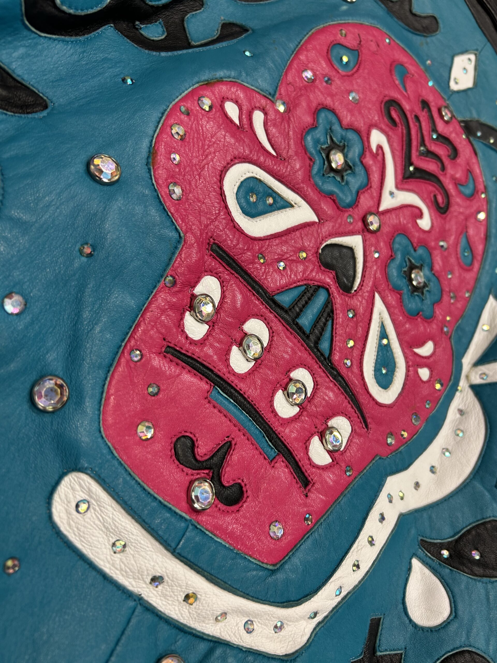 Kurtka Leather Up Dias De Los Muertos wykonana ze skóry naturalnej, zdobiona kryształami. Lata 80/90.