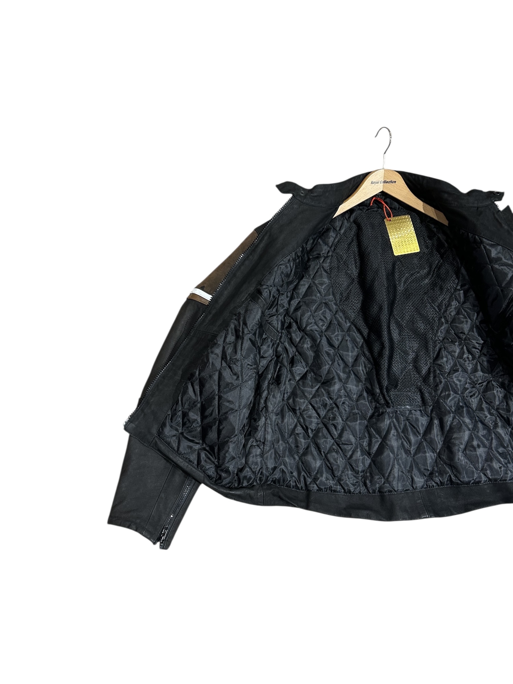 Męska kurtka motocyklowa wykonana ze skóry naturalnej.