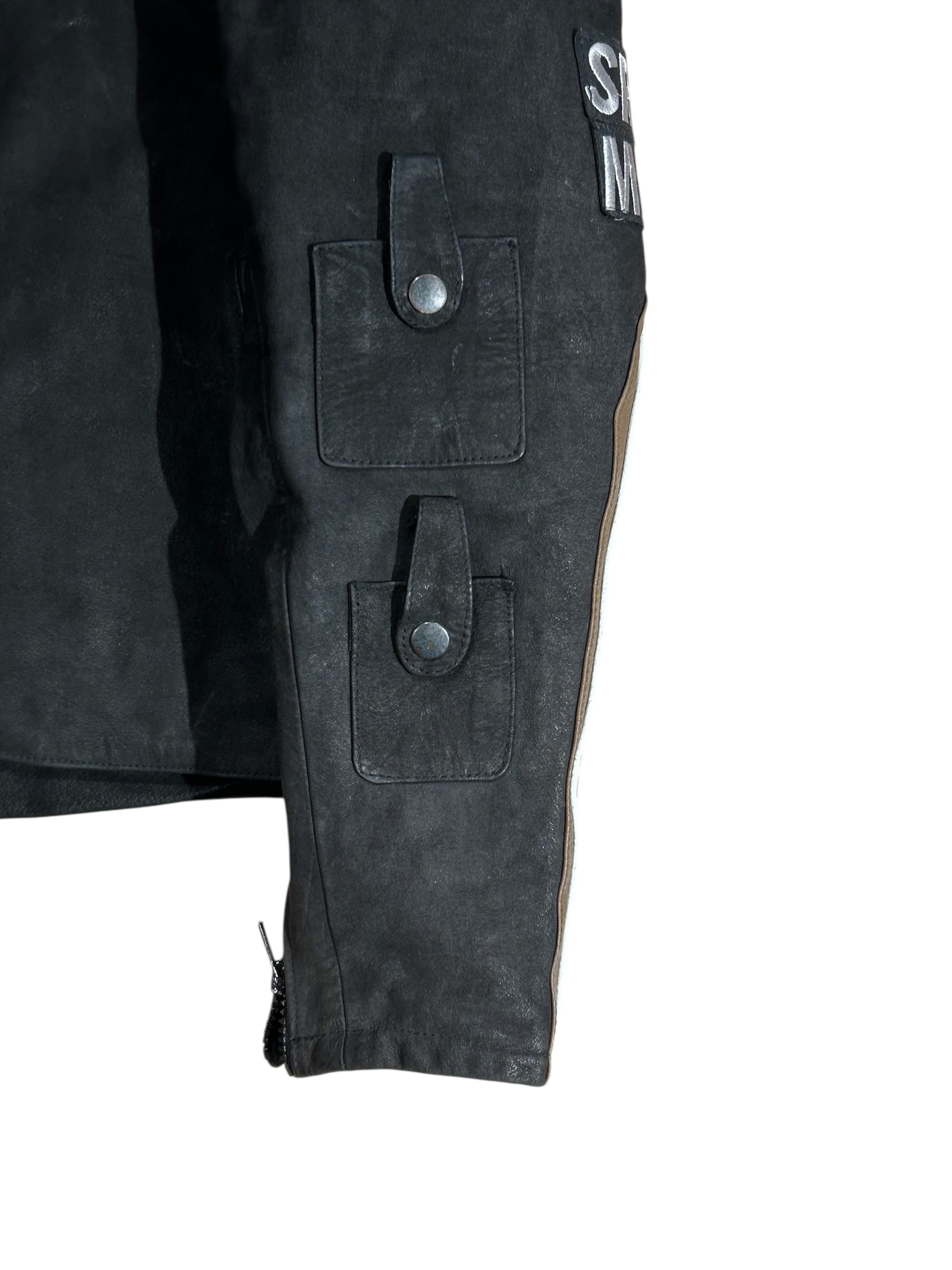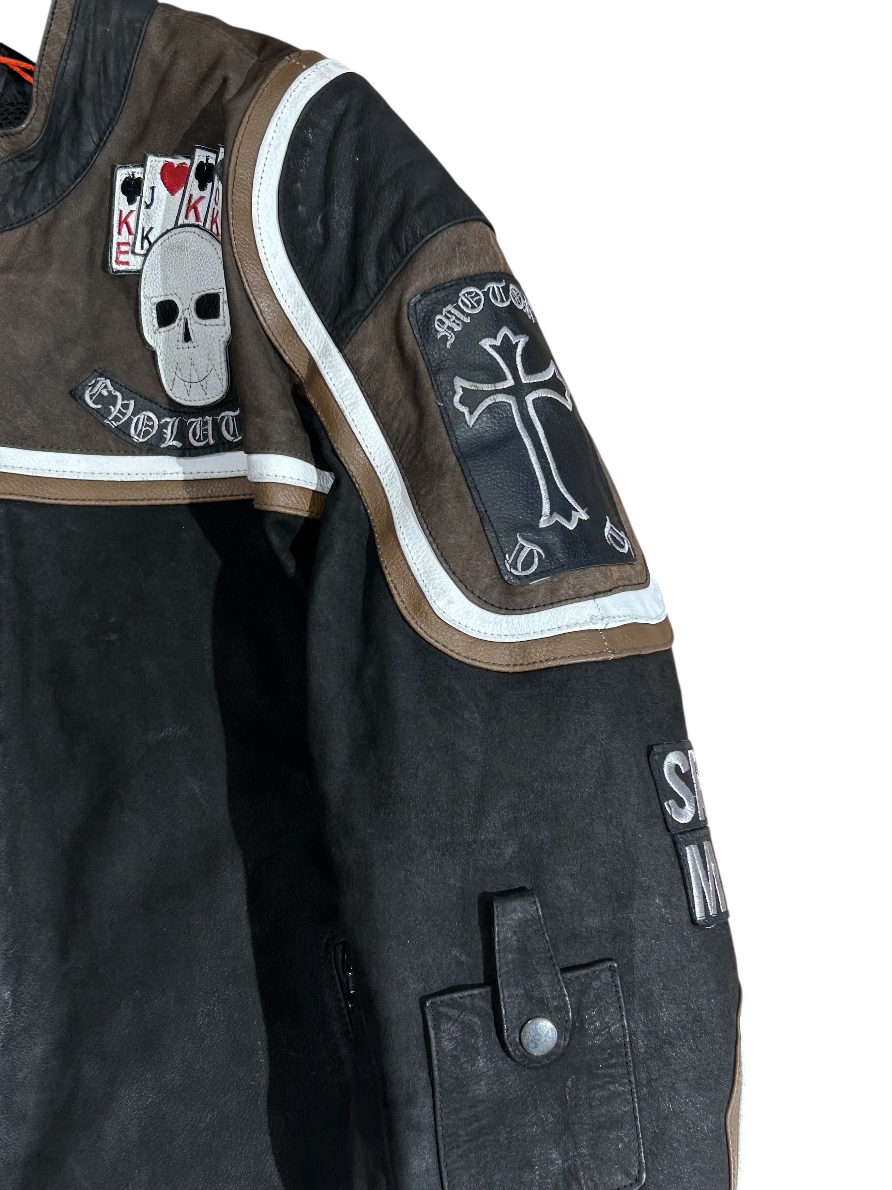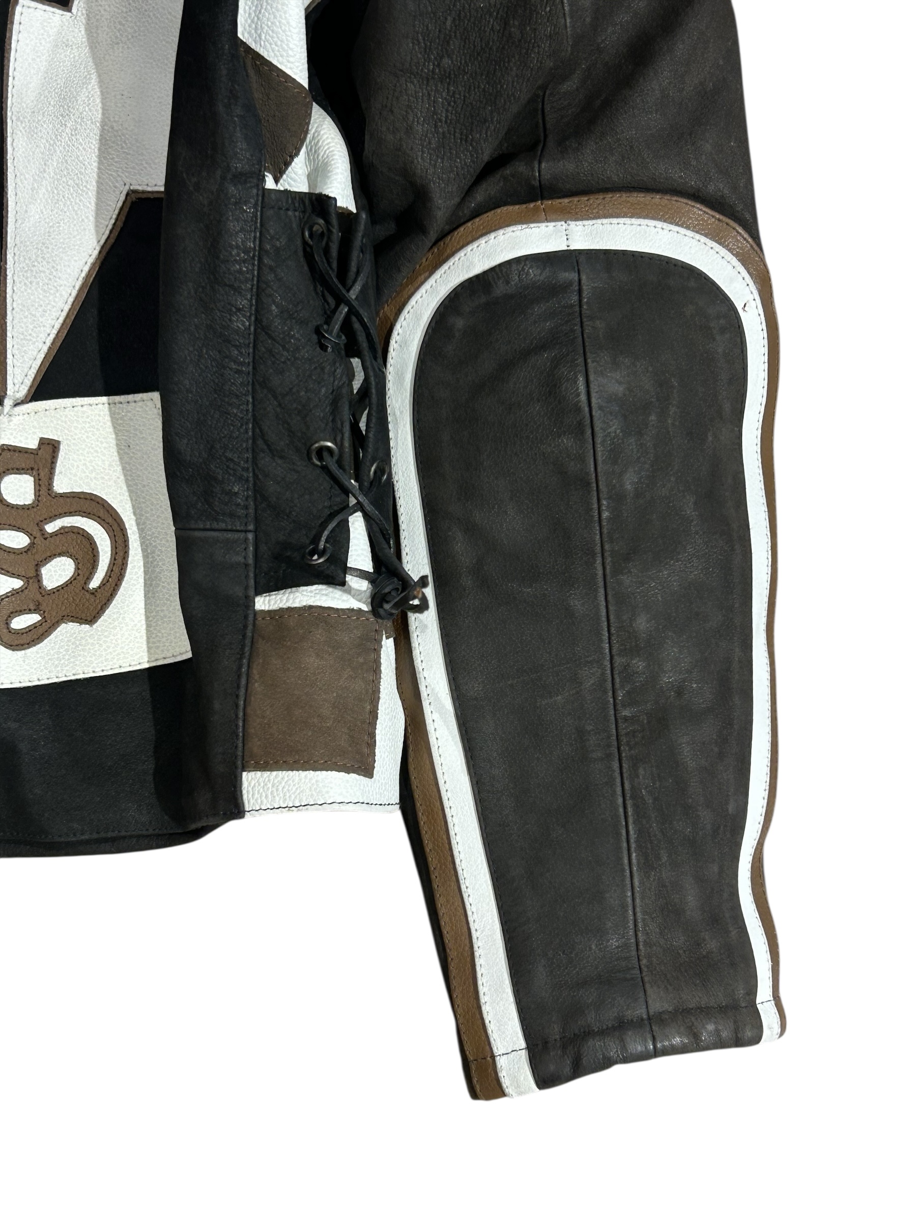 Wszystkie naszyte na kurtkę elementy są skórzane.