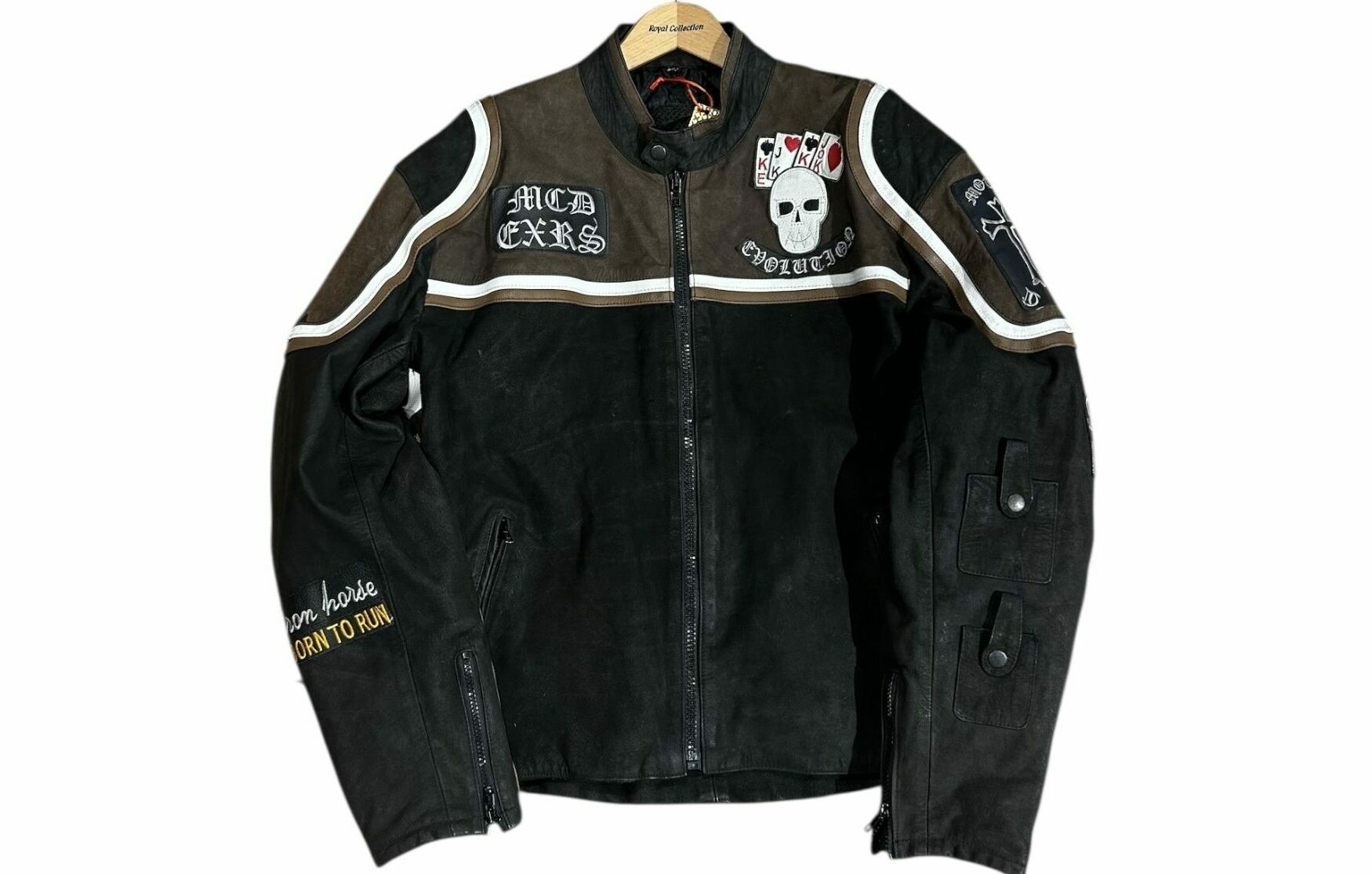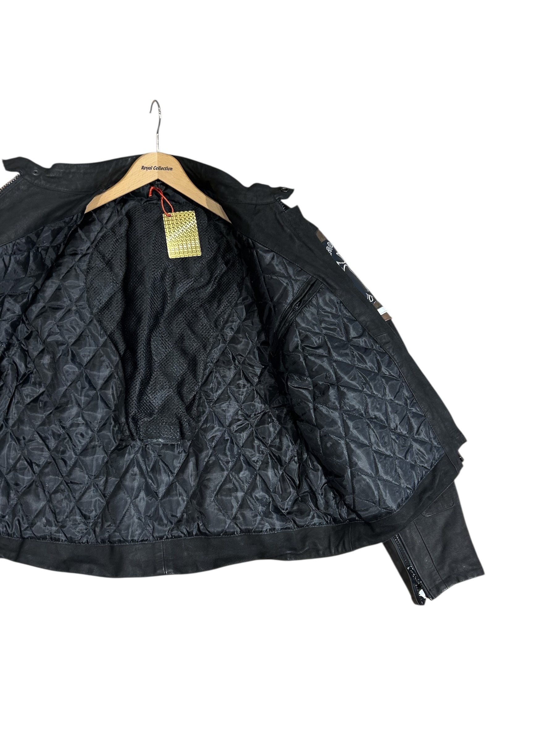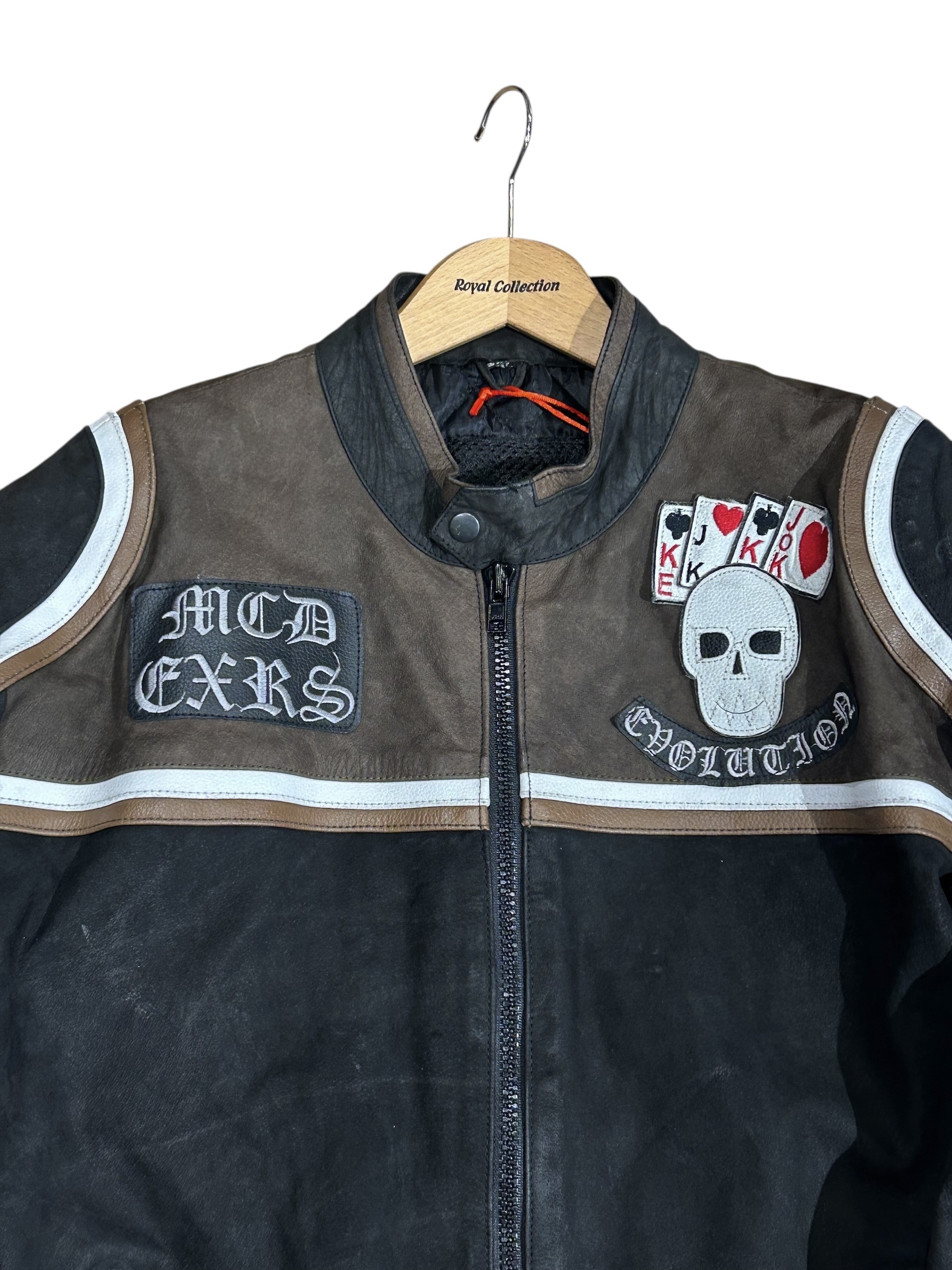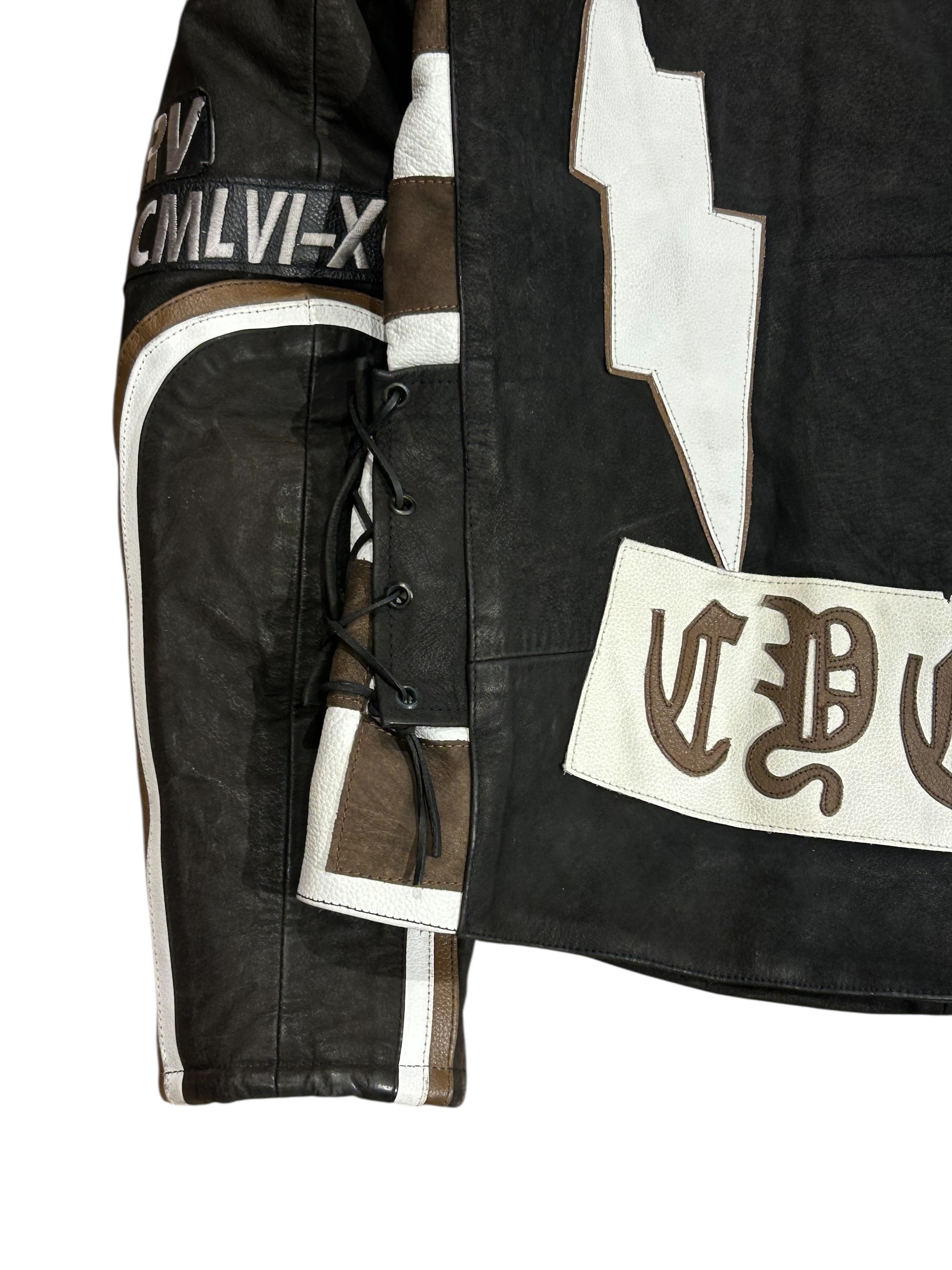 Wszystkie naszyte na kurtkę elementy są skórzane.