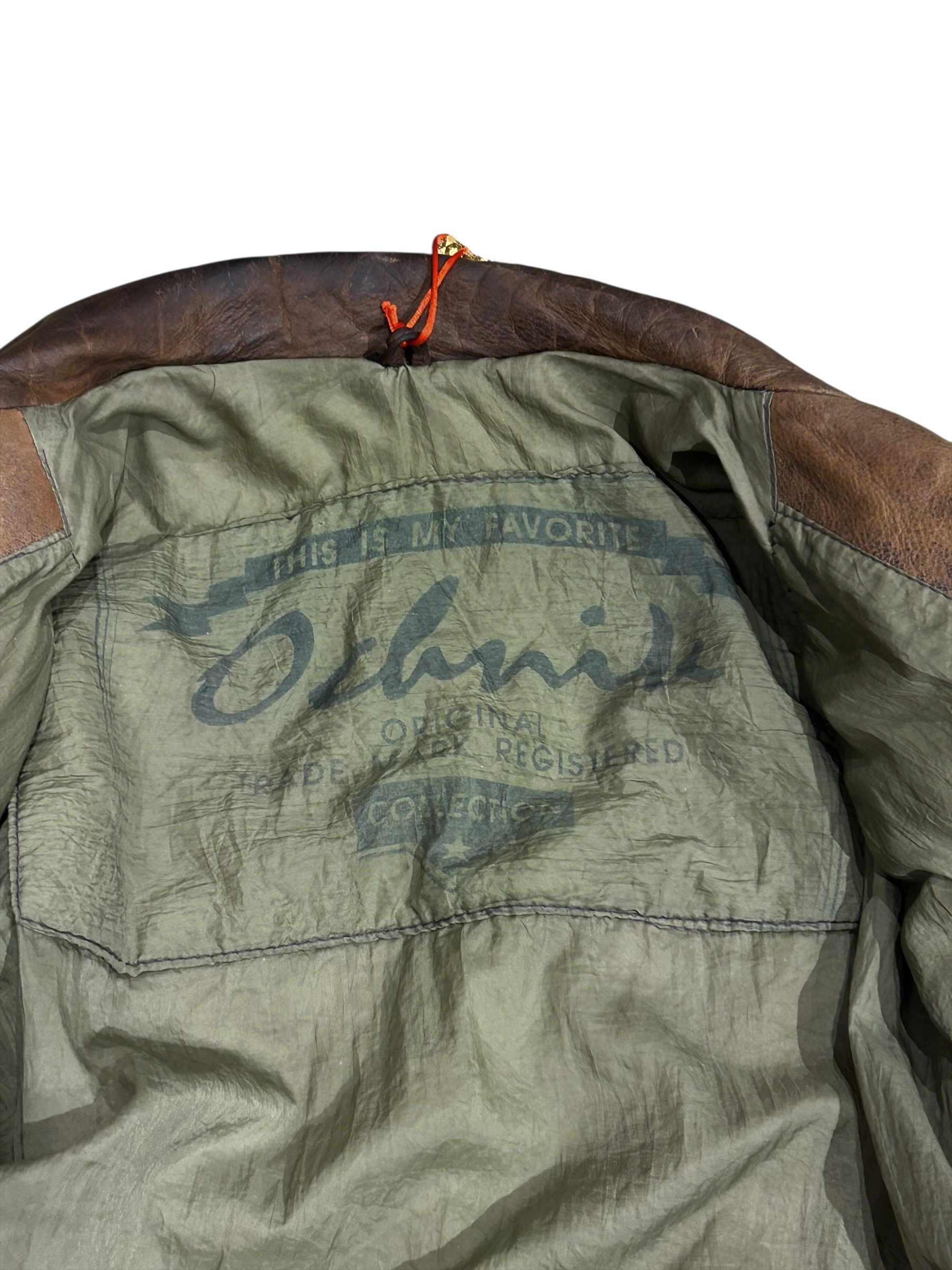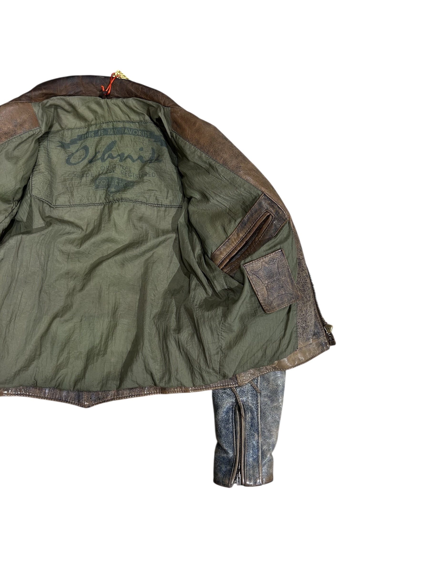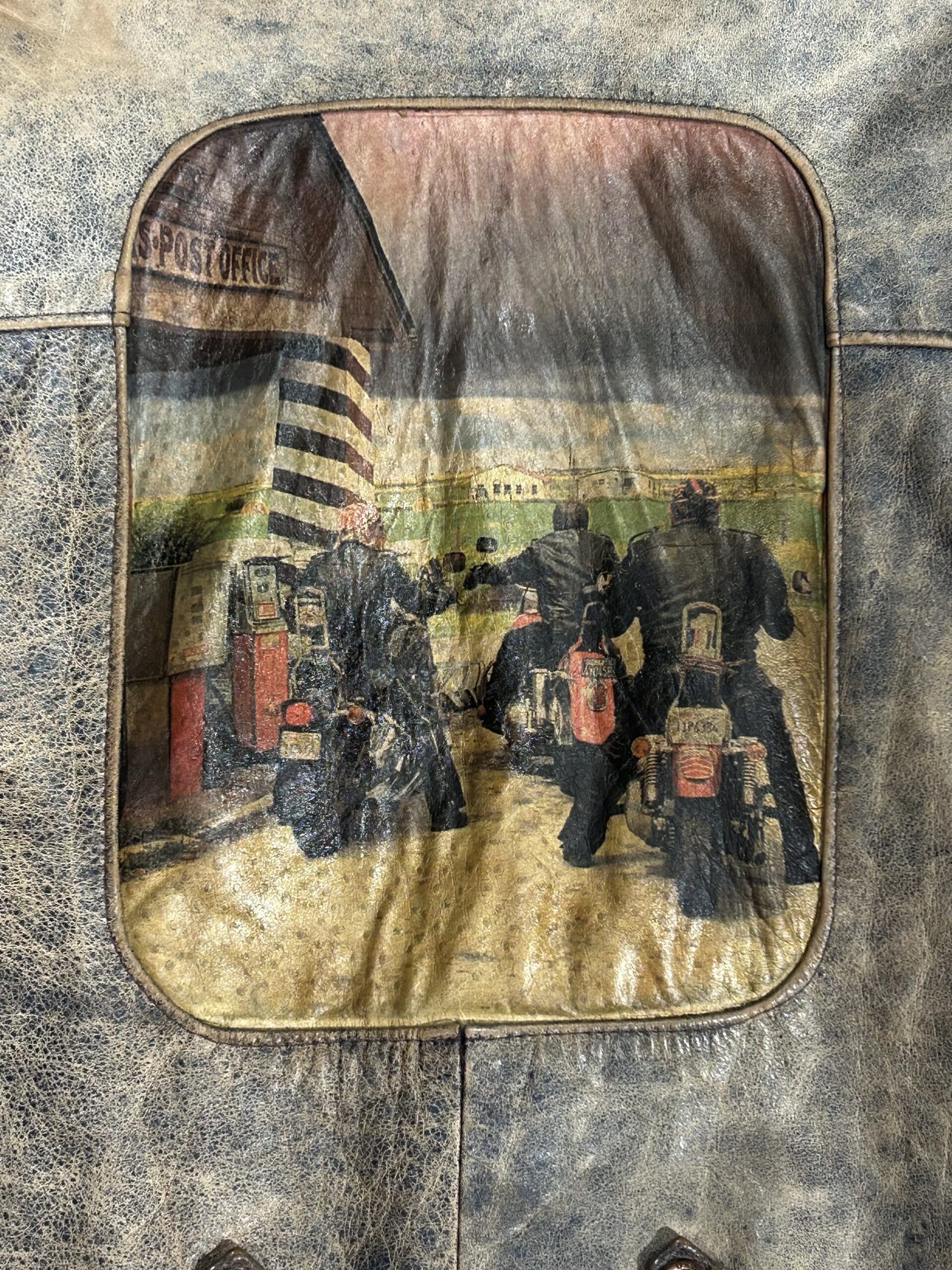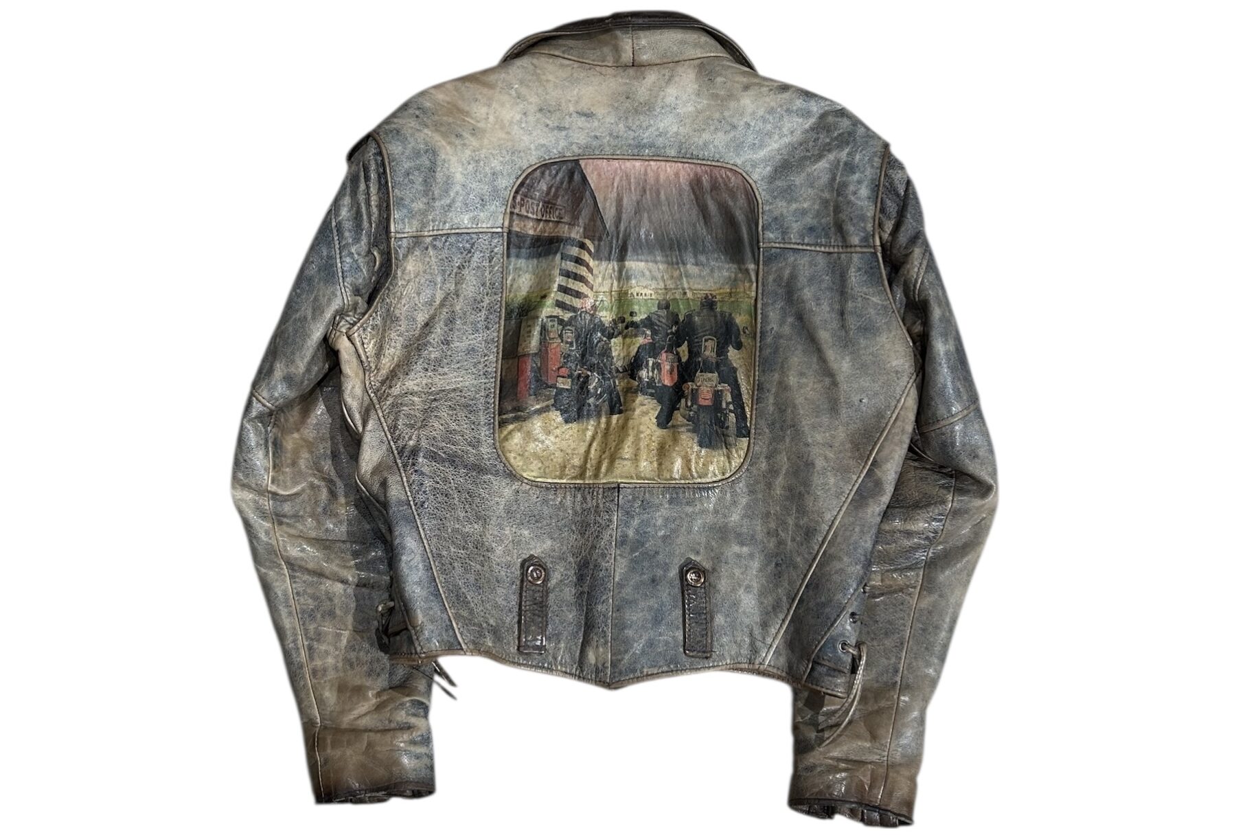 Grafika z tyłu kurtki naniesiona została na skórę naturalną.