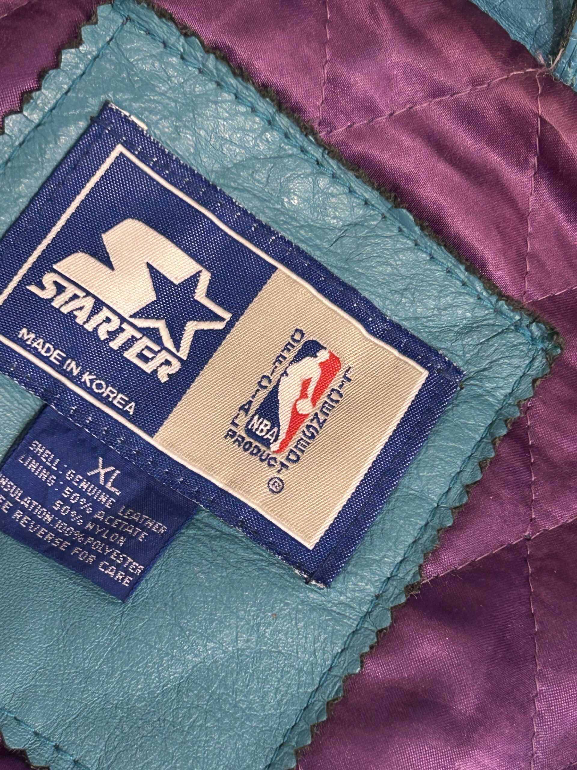 Kurtka skórzana teamu Charlotte Hornets marki Starter na licencjach NBA.